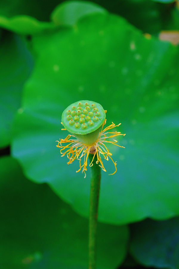 夏風(fēng)輕輕拂過(guò)“害羞”的小蓮蓬,翠綠的荷葉層層疊疊,錯(cuò)落有致。