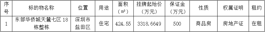 深圳報業(yè)集團委托深圳聯(lián)合產權交易所對深圳市鹽田區(qū)東部華僑城天麓七區(qū)18棟整棟房產進行公開掛牌交易,深圳聯(lián)合產權交易所現已公開披露以下產權轉讓信息,廣泛征集受讓方。請有意者到深圳聯(lián)合產權交易所辦理受讓登記手續(xù)。
