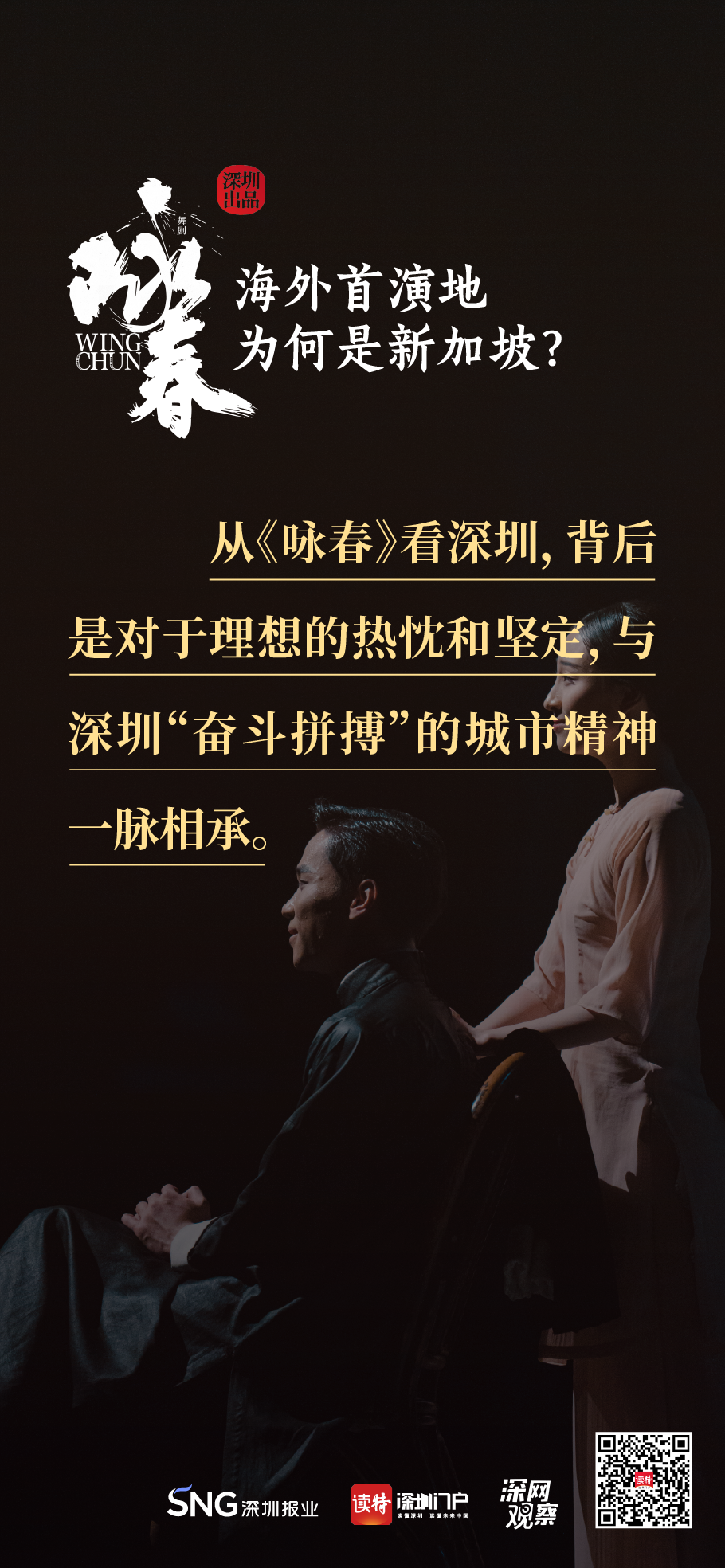 《詠春》書寫平凡英雄的傳奇,開詠春的一扇門,只為追尋心中的那一束光?!对伌骸?,連接鵬城與獅城,嶺南大地的人文史脈,輕叩著新加坡華人圈的心扉,傳統(tǒng)文化的底蘊讓兩地更加親近,海外首演,不二之選。