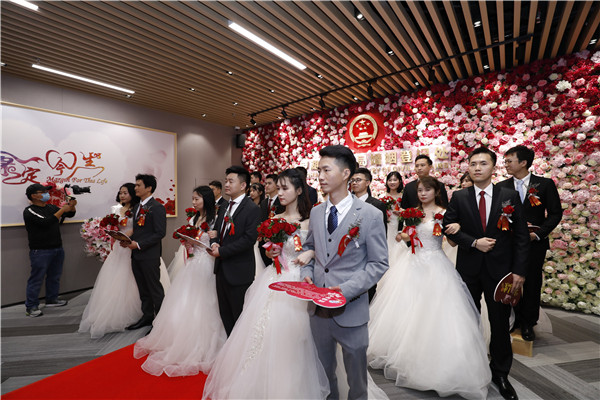 ?“1212,要愛(ài)要愛(ài)!我們結(jié)婚啦!”,“雙十二”對(duì)大部分人來(lái)說(shuō)是一個(gè)購(gòu)物的好日子,但對(duì)打算步入婚姻的新人們來(lái)說(shuō),卻是一個(gè)不可錯(cuò)過(guò)的登記好時(shí)機(jī)。12月12日,羅湖區(qū)婚姻登記處四處洋溢著歡樂(lè)的笑聲,12對(duì)新人在滿是玫瑰花的登記處中舉行集體結(jié)婚儀式。據(jù)悉,這也是疫情以來(lái)羅湖區(qū)首場(chǎng)結(jié)婚登記集體頒證儀式。