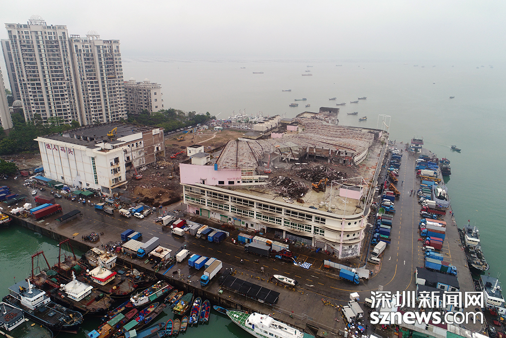圖為4月16日漁人碼頭拆除現(xiàn)場,對周邊漁船停泊和魚鋪經(jīng)營并未造成影響