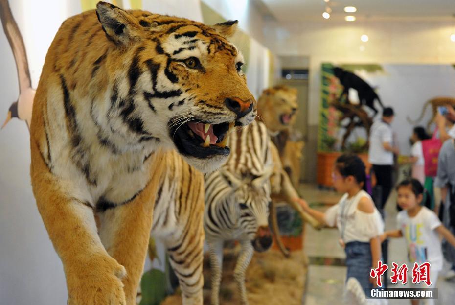5月27日,各類飛禽走獸活靈活現(xiàn)地出現(xiàn)在民眾的眼前。正在福建博物院展出的第四屆中國動物標本大賽的257件惟妙惟肖的標本作品集中對外開放,讓民眾如進入“動物世界”。本次大賽匯集了全國標本制作企業(yè)、博物館、大專院校、研究所等60多家單位參加,標本涵蓋哺乳類、鳥類、爬行類、兩棲類、魚類等動物類群的皮張和骨骼標本。主辦方希望通過標本大賽,向公眾展現(xiàn)動物世界的美麗,宣傳生物多樣性和生態(tài)文明,借鑒吸收國際標本制作先進經驗,提高中國野生動植物標本制作的整體水平。圖為參賽的老虎標本。中新社記者 張斌 攝