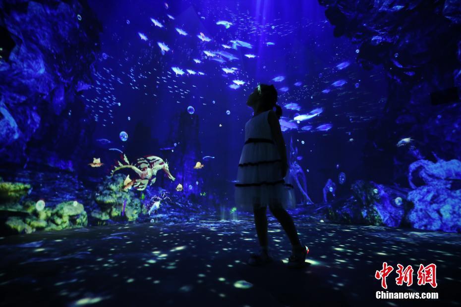 7月5日,民眾欣賞“尋夢海底兩萬里深海之光”沉浸式藝術展。當日,該展在北京嘉德藝術中心開幕。展覽是以“深海之光”為主題的海底光影沉浸式藝術展,創(chuàng)意藝術團隊利用數字技術和水打造出一個能夠感受到“生命”的深海世界。中新社記者楊可佳 攝