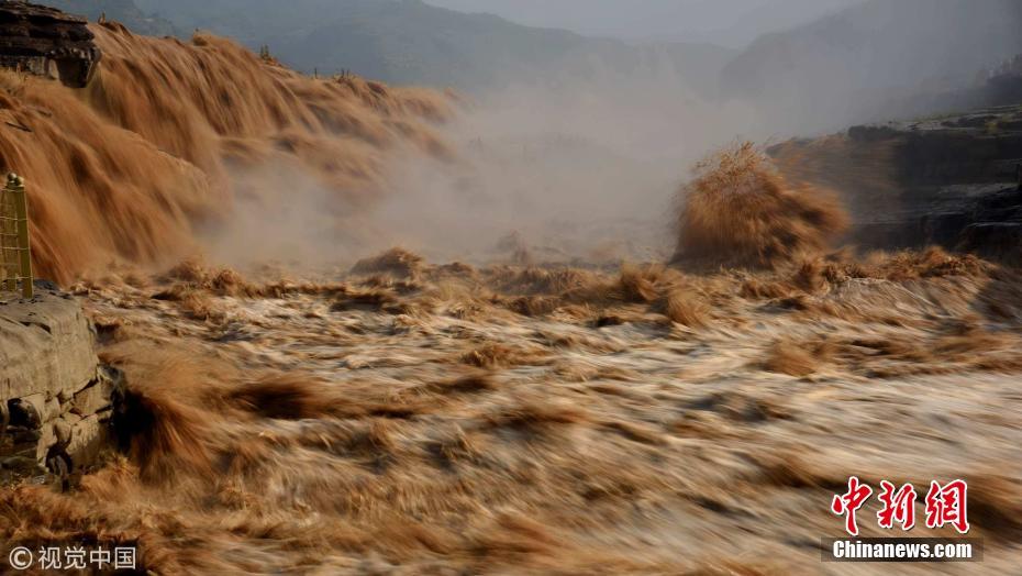 7月17日,山西臨汾,游客在黃河壺口瀑布游覽觀瀑。進(jìn)入7月主汛期,受黃河上游降雨量增多影響,位于山西吉縣和陜西宜川縣交界的黃河壺口瀑布水量暴漲。濁浪滔天的壯美瀑布群景觀,吸引了眾多游客。呂桂明攝 圖片來(lái)源:視覺(jué)中國(guó)