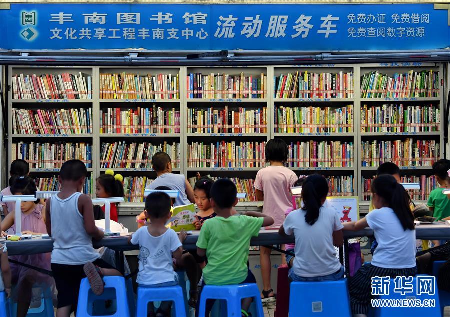 為豐富群眾的文化生活,2010年,河北省唐山市豐南區(qū)圖書館自行設(shè)計(jì)改造了低造價(jià)的多功能流動(dòng)服務(wù)車,每年5月至10月晚間開展流動(dòng)服務(wù)。除圖書借閱、電子閱覽和視頻播放服務(wù)外,流動(dòng)服務(wù)車還開展故事會(huì)、閱讀分享、家庭教育講座、小讀者宣傳等隨車活動(dòng),被當(dāng)?shù)厝罕姺Q為“書香豐南動(dòng)車組”。