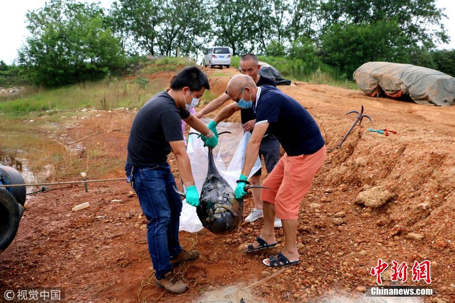 當(dāng)日16時(shí)許,中科院武漢水生所專家趕到現(xiàn)場(chǎng),經(jīng)解開江豚身上的絲網(wǎng)發(fā)現(xiàn),這頭雄性成年江豚身體無明顯外傷,體重約35公斤,體長1.38米。該水生所段姓研究員判斷,該頭江豚應(yīng)該是被絲網(wǎng)纏住身體后無法掙脫,不能躍出水面呼吸最后導(dǎo)致溺亡,非??上А.?dāng)天下午,水生所專家將這頭死亡江豚帶回解剖并制作標(biāo)本。洪永林 攝 圖片來源:視覺中國 文字來源:九江新聞網(wǎng)