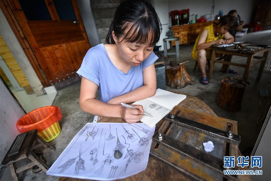 唐白梅是美國(guó)一所高校首飾設(shè)計(jì)專業(yè)的在讀研究生,專門利用暑假時(shí)間到雷山縣學(xué)習(xí)銀飾工藝?!耙郧疤糁鴵?dān)賣貨,賣不完回不了家;現(xiàn)在有了網(wǎng)上銷售,太方便了?!痹谫F州省黔東南苗族侗族自治州雷山縣西江鎮(zhèn)控拜村,50歲的銀匠龍懂陽拿著手機(jī)查看全國(guó)各地發(fā)來的銀飾訂單,七月份的銷售額輕松超過了一萬元。雷山縣的銀匠主要集中在控拜、麻料、烏高三個(gè)村,銀飾加工已經(jīng)有600多年歷史。作為銀匠家族的第九代傳人,龍懂陽從14歲開始便挑著銀飾走村串鄉(xiāng),上門推銷。但山鄉(xiāng)偏僻路途遙遠(yuǎn),客源又有限,這種方式僅能勉強(qiáng)維持收支。為了賺錢,龍懂陽放棄了傳統(tǒng)手藝,到溫州打工賣皮鞋。隨著家鄉(xiāng)的道路修通,苗寨的游客越來越多,銀飾品打開了新銷路。2014年,龍懂陽建起了銀匠鋪,重拾本行。在當(dāng)?shù)胤鲐毟刹亢涂腿说膯l(fā)下,他建起了銀飾展示廳,開了網(wǎng)店,線上訂單源源不斷。
