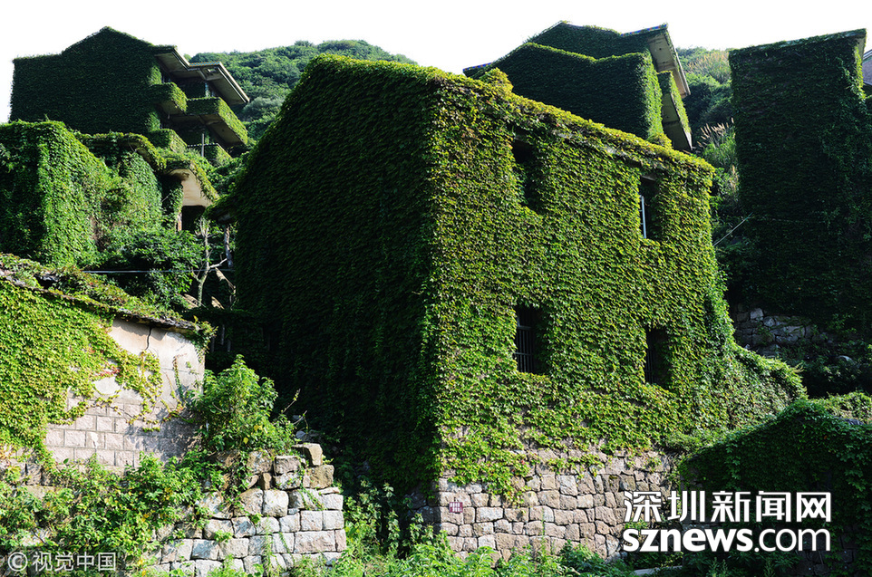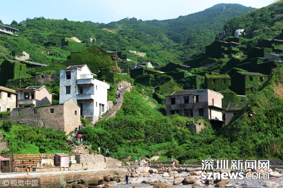 2018年8月8日,浙江舟山,掩映在綠色植被中的“無人村”,暑假里日均接待游客5、600人,高峰期每天到訪者達千人。