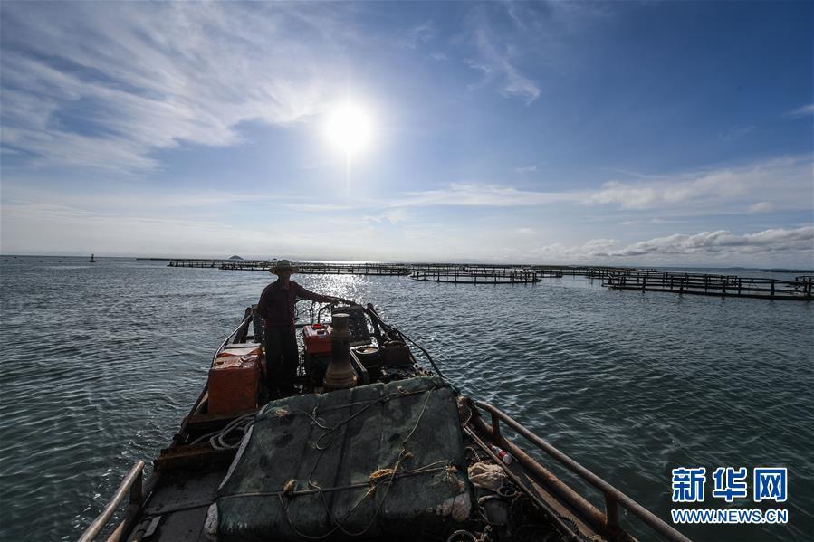 8月18日,南麂島海域的“海上牧場”養(yǎng)殖區(qū)內(nèi),漁民駕駛漁船進行養(yǎng)殖作業(yè)。進入8月,浙江省溫州市平陽縣南麂鎮(zhèn)海域上大片的大黃魚、貽貝等特色海產(chǎn)品養(yǎng)殖區(qū)域迎來豐收季節(jié),養(yǎng)殖戶們駕駛漁船在養(yǎng)殖區(qū)海域進行打撈收獲,在碧海藍天下構(gòu)成了一幅“海上牧場”的美麗豐收景象。近年來,南麂鎮(zhèn)政府引導漁民養(yǎng)殖戶充分發(fā)揮“靠海吃海”的資源優(yōu)勢,大力發(fā)展海洋養(yǎng)殖經(jīng)濟和海島旅游經(jīng)濟,實現(xiàn)了南麂由“生態(tài)美”向“產(chǎn)業(yè)美”,“產(chǎn)業(yè)美”向“經(jīng)濟美”的轉(zhuǎn)變。同時該鎮(zhèn)堅持以大黃魚、貽貝等為特色產(chǎn)業(yè)支撐,精準發(fā)展高效海洋養(yǎng)殖業(yè),重點培養(yǎng)一批新型職業(yè)漁民,依靠專業(yè)技術(shù)支持,實現(xiàn)深海仿生養(yǎng)殖,讓好生態(tài)造就好品質(zhì),重點打造南麂養(yǎng)殖品牌,組建營銷網(wǎng)絡(luò),拓展特色海產(chǎn)品市場。新華社記者 徐昱攝