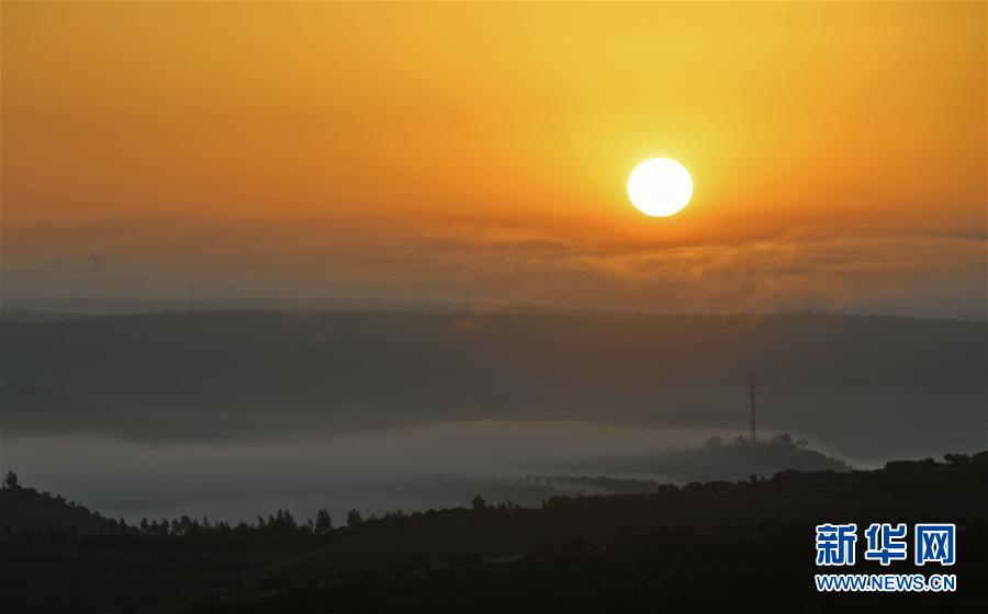 云霧繚繞的寧夏彭陽縣金雞坪梯田公園(7月17日攝)。新華社記者 王鵬 攝