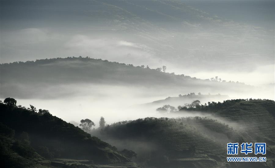 云霧繚繞的寧夏彭陽縣金雞坪梯田公園(7月17日攝)。 近日,寧夏固原市彭陽縣數(shù)十萬畝旱作梯田在曙光中迎來云海景觀,層疊的梯田間云霧繚繞,宛如仙境。據(jù)了解,彭陽縣自1983年建縣以來,始終堅(jiān)持生態(tài)立縣的理念,積極推進(jìn)植樹造林事業(yè),全縣林木保存面積由1983年的27萬畝,增長(zhǎng)到目前的203.87萬畝,森林覆蓋率達(dá)到27.5%。 新華社記者 王鵬 攝 [責(zé)任編輯:李曉蕾]