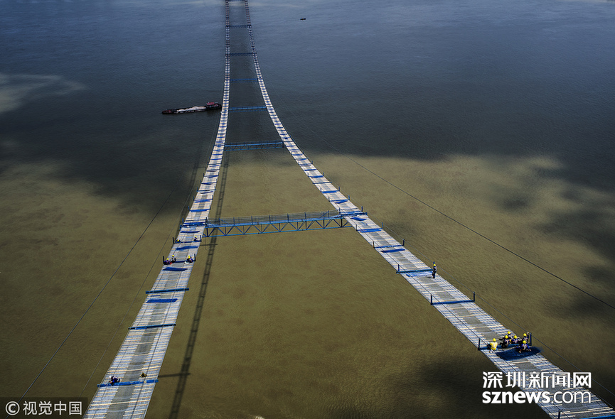 貓道是懸索橋施工時架設(shè)在主纜之下、平行于主纜的線形臨時施工便道,是主纜系統(tǒng)乃至懸索橋整個上部結(jié)構(gòu)的施工高空腳手架平臺,作為極其重要的臨時施工設(shè)施,大橋竣工后被拆除。