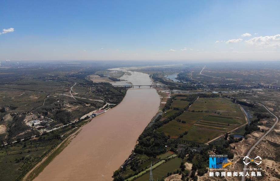 航拍黃河托克托段兩岸風(fēng)光,大河奔流向天際。新華網(wǎng) 張偉 攝