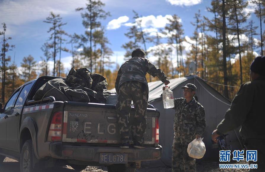 9月18日,在內(nèi)蒙古大興安嶺根河林業(yè)局約安里林場,林場職工為馴鹿養(yǎng)殖基地運送給養(yǎng)。新華社記者于洋攝
