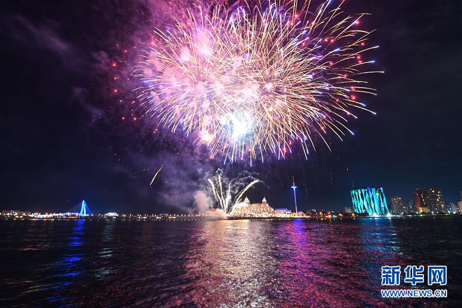 9月23日在淡水漁人碼頭拍攝的煙花秀。當日,臺灣淡水漁人碼頭舉辦煙花秀,迎接中秋佳節(jié)。 新華社記者 金良快 攝