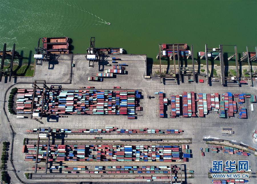 這是西江黃金水道上的貴港羅泊灣集裝箱碼頭(3月9日攝,無(wú)人機(jī)航拍)。 新華社記者 周華 攝