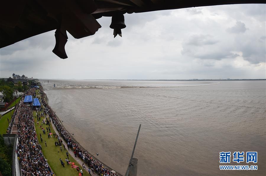 9月27日,人們?cè)谡憬幨宣}官鎮(zhèn)觀看錢(qián)塘江大潮。當(dāng)日是農(nóng)歷八月十八,號(hào)稱(chēng)“天下第一潮”的錢(qián)塘江大潮洶涌而來(lái),眾多錢(qián)塘江沿岸居民和游客爭(zhēng)睹其壯觀景象。新華社記者 黃宗治 攝