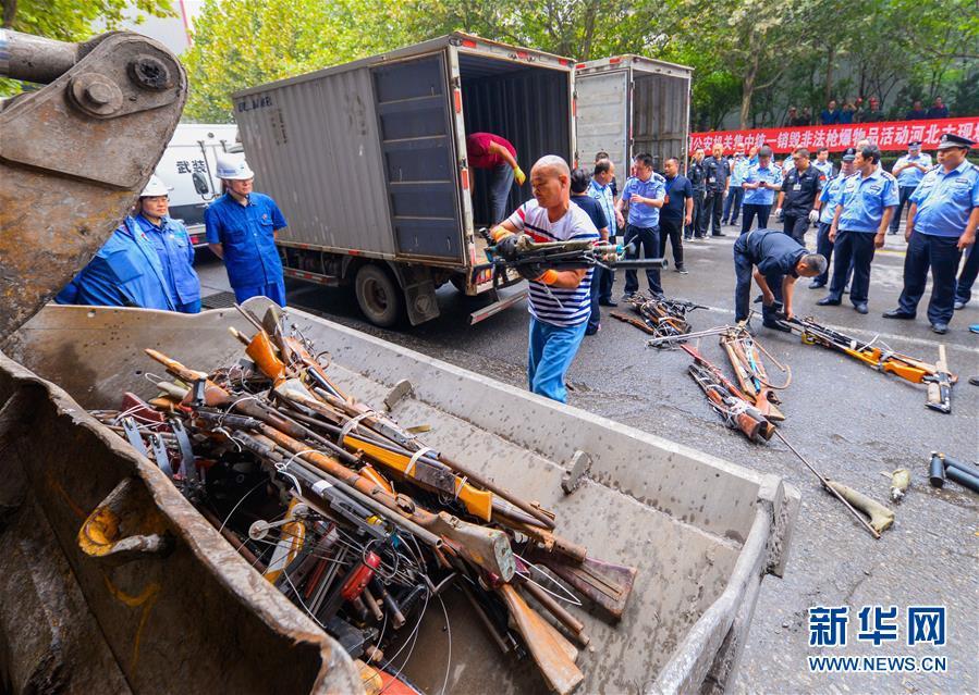 9月20日,在河北省邯鄲市邯鄲鋼鐵集團(tuán)第三煉鋼廠,非法槍支被集中銷毀。 新華社記者 王曉 攝