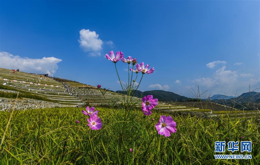 9月29日拍攝的秋日中的建德市大洋鎮(zhèn)高垣村梯田風景。當日,2000多名太極拳愛好者在浙江省建德市大洋鎮(zhèn)高垣村的千畝梯田上參加太極拳表演,吸引很多當?shù)厝撕陀慰颓皝碛^賞,助力當?shù)亟鹎飼r節(jié)鄉(xiāng)村旅游。近兩年來,大洋鎮(zhèn)充分利用土地整治后形成的千畝梯田打造農(nóng)業(yè)觀光綜合體,發(fā)展綜合型農(nóng)業(yè)觀光旅游,為鄉(xiāng)村振興注入新活力。新華社記者徐昱攝