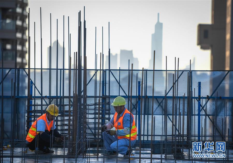 10月1日,中建三局三公司建筑工人在南京世茂外灘新城項目現(xiàn)場施工。當日是國慶節(jié),許多勞動者堅守在工作一線,在崗位上度過節(jié)日。新華社記者李響攝