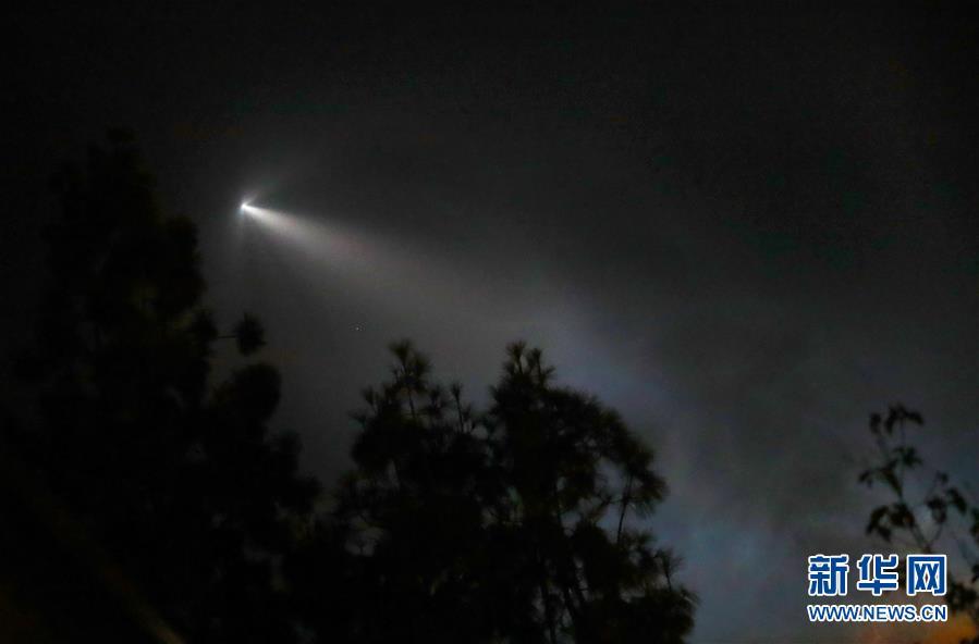 這是10月7日在美國洛杉磯拍攝的“獵鷹9”火箭發(fā)射升空后的景象。 美國太空探索技術(shù)公司7日用一枚“獵鷹9”火箭成功將阿根廷一顆地球觀測衛(wèi)星送入太空,并首次在美國西海岸成功實(shí)現(xiàn)火箭第一級的陸地回收。 新華社記者李穎攝