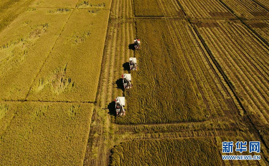 在吉林省吉林市萬昌鎮(zhèn),農民駕駛收割機收割水稻(9月18日無人機拍攝)。 金秋十月,位于“黃金水稻帶”的吉林省喜迎豐收,全省1200多萬畝水稻陸續(xù)開鐮。 記者在吉林省水稻主產區(qū)走訪發(fā)現(xiàn),連年豐收的喜人圖景背后,蘊藏著許多引人矚目的“時代之變”。 新華社記者 許暢 攝