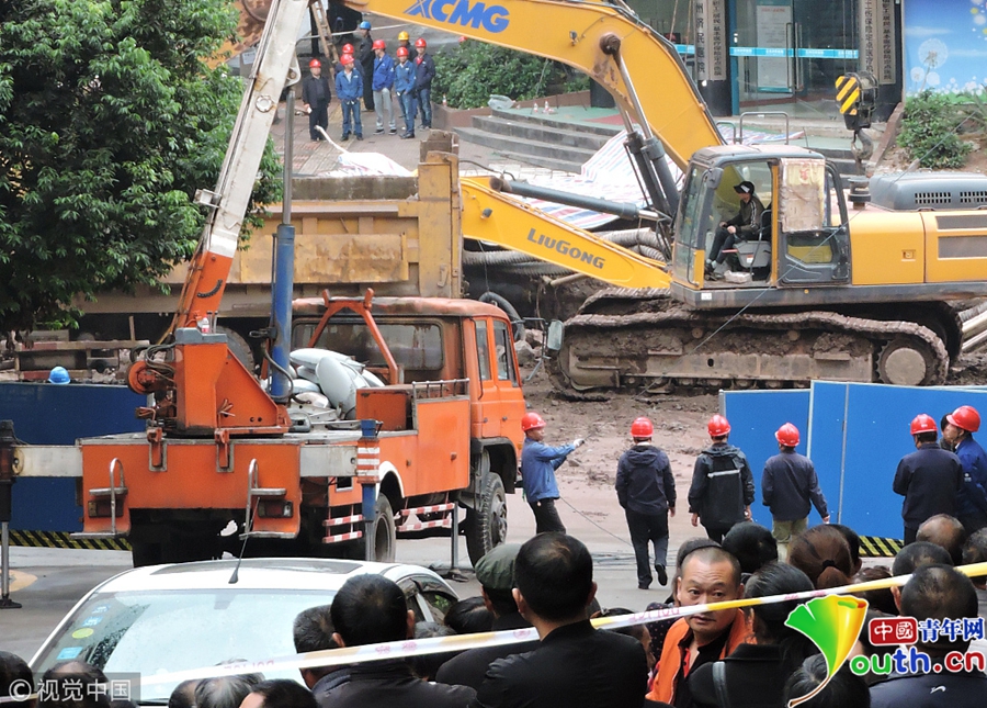 中國青年網(wǎng)北京10月9日電 2018年10月8日消息,四川達(dá)州。10月8日從四川省達(dá)州市達(dá)川區(qū)委宣傳部獲悉,7日14時(shí)30分左右,達(dá)川區(qū)東環(huán)南路103號(hào)人行道路面發(fā)生塌陷險(xiǎn)情,經(jīng)調(diào)取視頻監(jiān)控和走訪周邊群眾,救援人員初步判斷疑似有4人掉入坑中。圖片作者:視覺中國