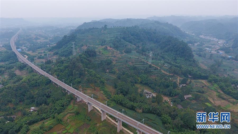 這是10月11日無人機(jī)拍攝的川藏鐵路成雅段鄧河特大橋。新華社記者薛玉斌攝