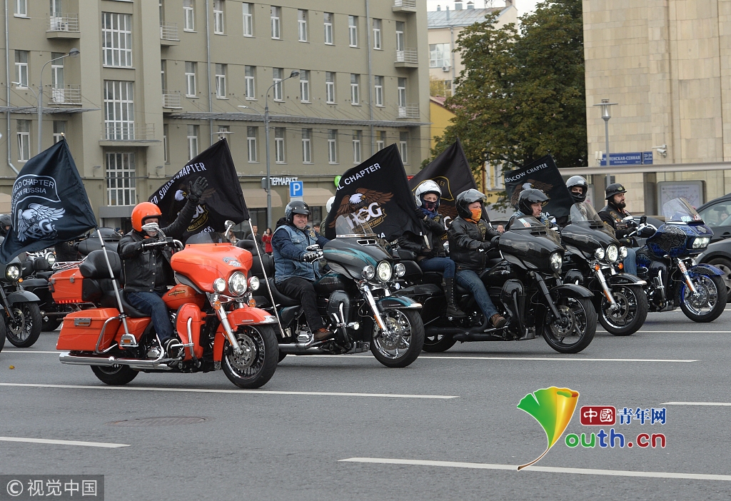 莫斯科舉行摩托車游行 重機集體上路超炫酷