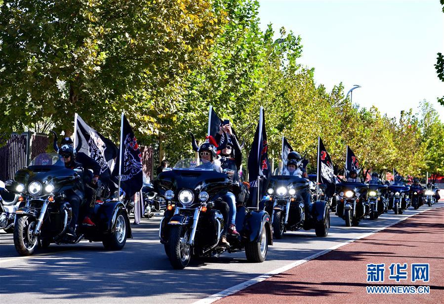 10月10日,騎手們在唐山市南湖公園丹鳳朝陽廣場出發(fā)開始巡游活動。