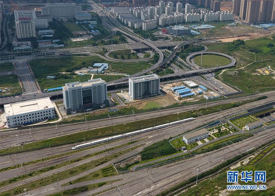 這是“零換乘”立體綜合交通樞紐——廣西南寧東站(9月4日無人機拍攝)。 廣西壯族自治區(qū)成立60年來,鐵路建設發(fā)生翻天覆地的變化。來自中國鐵路南寧局集團有限公司的數(shù)據(jù)顯示,1958年廣西鐵路總里程為1346.3公里,如今廣西鐵路總里程達5191公里。廣西與周邊相鄰省份間實現(xiàn)動車“公交化”開行。此外,北部灣港—重慶班列、東盟海產(chǎn)品冷鏈班列、“百色一號”果蔬專列等的開通和運營,強化了鐵路供給的針對性和有效性。鐵路成為助推廣西經(jīng)濟社會快速發(fā)展的“大動脈”。 新華社記者陸波岸攝