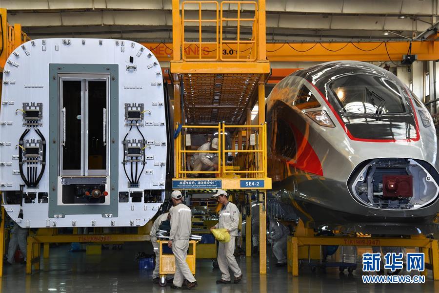 2018年5月10日,“復興號”動車組在總裝生產(chǎn)線上裝配。新華社記者 李紫恒 攝