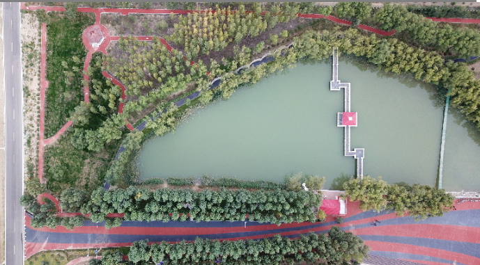 航拍沙漠綠洲月亮湖