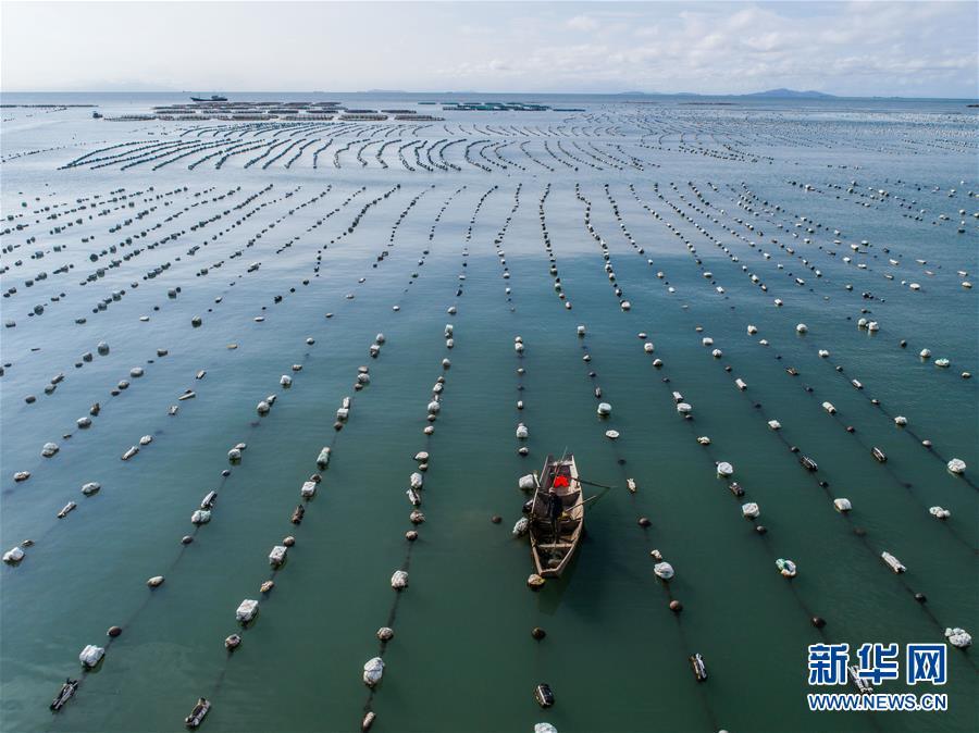 8月18日,南麂島馬祖岙海灣內(nèi),養(yǎng)殖戶乘船在貽貝養(yǎng)殖區(qū)內(nèi)作業(yè)(無人機拍攝)。進入8月,浙江省溫州市平陽縣南麂鎮(zhèn)海域上大片的大黃魚、貽貝等特色海產(chǎn)品養(yǎng)殖區(qū)域迎來豐收季節(jié),養(yǎng)殖戶們駕駛漁船在養(yǎng)殖區(qū)海域進行打撈收獲,在碧海藍天下構(gòu)成了一幅“海上牧場”的美麗豐收景象。近年來,南麂鎮(zhèn)政府引導(dǎo)漁民養(yǎng)殖戶充分發(fā)揮“靠海吃?!钡馁Y源優(yōu)勢,大力發(fā)展海洋養(yǎng)殖經(jīng)濟和海島旅游經(jīng)濟,實現(xiàn)了南麂由“生態(tài)美”向“產(chǎn)業(yè)美”,“產(chǎn)業(yè)美”向“經(jīng)濟美”的轉(zhuǎn)變。同時該鎮(zhèn)堅持以大黃魚、貽貝等為特色產(chǎn)業(yè)支撐,精準(zhǔn)發(fā)展高效海洋養(yǎng)殖業(yè),重點培養(yǎng)一批新型職業(yè)漁民,依靠專業(yè)技術(shù)支持,實現(xiàn)深海仿生養(yǎng)殖,讓好生態(tài)造就好品質(zhì),重點打造南麂養(yǎng)殖品牌,組建營銷網(wǎng)絡(luò),拓展特色海產(chǎn)品市場。新華社記者 徐昱攝