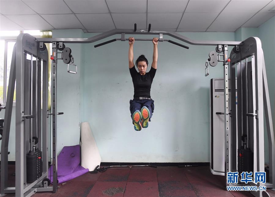 10月16日,湯春燕在健身房?jī)?nèi)進(jìn)行體能訓(xùn)練。 新華社記者王全超攝
