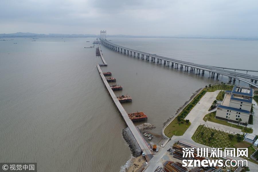 建設中的福廈高鐵泉州灣跨海大橋。
