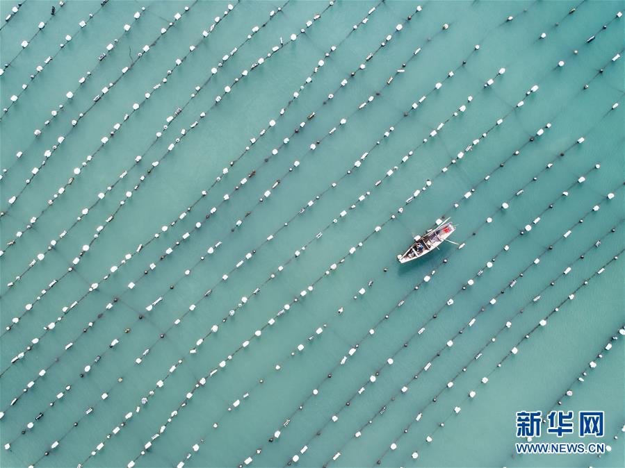 8月18日,南麂島馬祖岙海灣內(nèi),養(yǎng)殖戶乘船在貽貝養(yǎng)殖區(qū)內(nèi)作業(yè)(無人機(jī)拍攝)。進(jìn)入8月,浙江省溫州市平陽縣南麂鎮(zhèn)海域上大片的大黃魚、貽貝等特色海產(chǎn)品養(yǎng)殖區(qū)域迎來豐收季節(jié),養(yǎng)殖戶們駕駛漁船在養(yǎng)殖區(qū)海域進(jìn)行打撈收獲,在碧海藍(lán)天下構(gòu)成了一幅“海上牧場”的美麗豐收景象。近年來,南麂鎮(zhèn)政府引導(dǎo)漁民養(yǎng)殖戶充分發(fā)揮“靠海吃海”的資源優(yōu)勢(shì),大力發(fā)展海洋養(yǎng)殖經(jīng)濟(jì)和海島旅游經(jīng)濟(jì),實(shí)現(xiàn)了南麂由“生態(tài)美”向“產(chǎn)業(yè)美”,“產(chǎn)業(yè)美”向“經(jīng)濟(jì)美”的轉(zhuǎn)變。同時(shí)該鎮(zhèn)堅(jiān)持以大黃魚、貽貝等為特色產(chǎn)業(yè)支撐,精準(zhǔn)發(fā)展高效海洋養(yǎng)殖業(yè),重點(diǎn)培養(yǎng)一批新型職業(yè)漁民,依靠專業(yè)技術(shù)支持,實(shí)現(xiàn)深海仿生養(yǎng)殖,讓好生態(tài)造就好品質(zhì),重點(diǎn)打造南麂養(yǎng)殖品牌,組建營銷網(wǎng)絡(luò),拓展特色海產(chǎn)品市場。新華社記者 徐昱攝