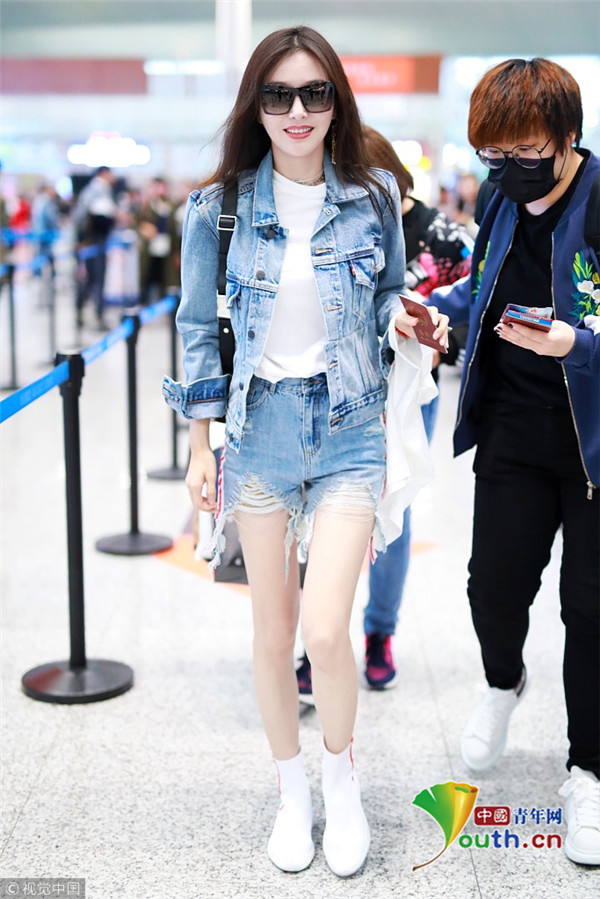 2018年10月17日,上海,秦嵐現(xiàn)身機(jī)場(chǎng)。她一身牛仔LOOK露出白皙長(zhǎng)腿,雪膚紅唇美得不可方物,長(zhǎng)發(fā)飄飄玉手撩發(fā)女神范十足。