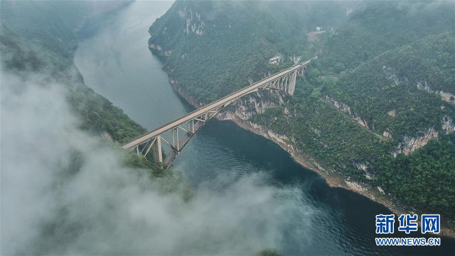8月27日,位于貴州省甕安縣的清水河大橋云霧繚繞,景色如畫(huà)。