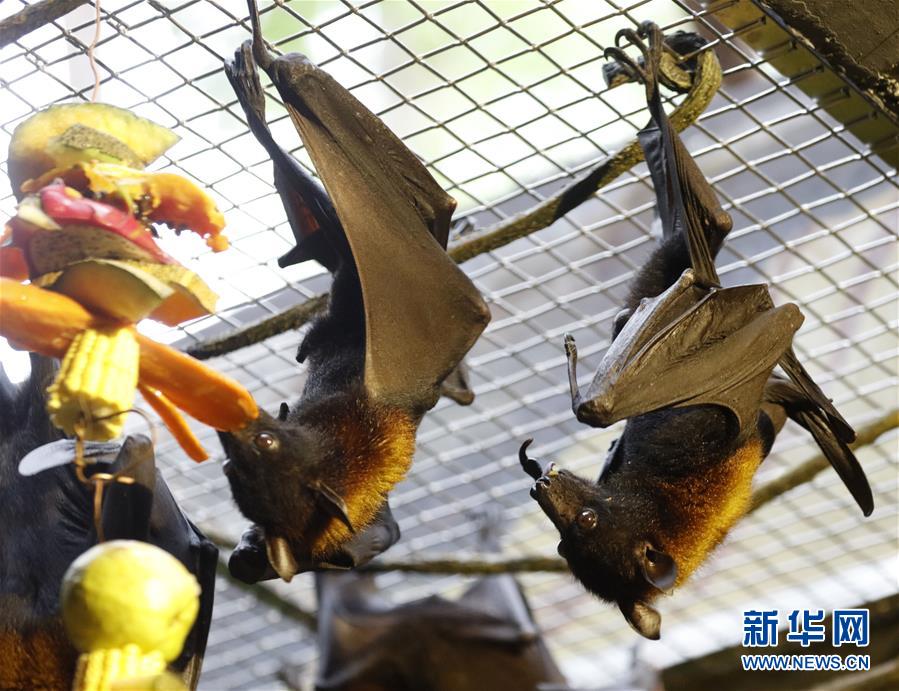 10月18日,馬來大狐蝠在進食。 當(dāng)日,馬來大狐蝠在廣州長隆野生動物世界首次展出。馬來大狐蝠體長20至25厘米,翼幅最大近兩米,主要分布在印度尼西亞與馬來西亞等地。 新華社記者 黃國保 攝