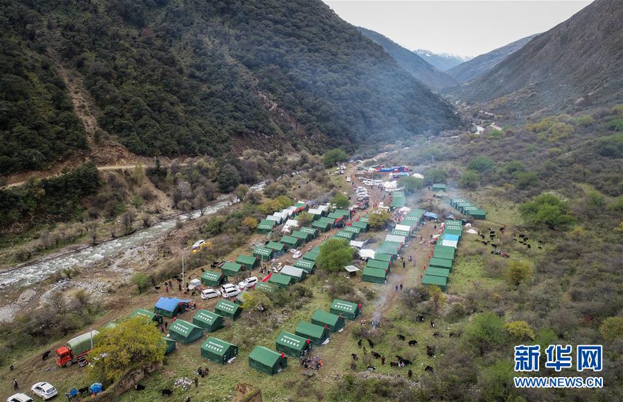 這是西藏昌都市江達縣波羅鄉(xiāng)一臨時過渡安置點(10月14日無人機拍攝)。