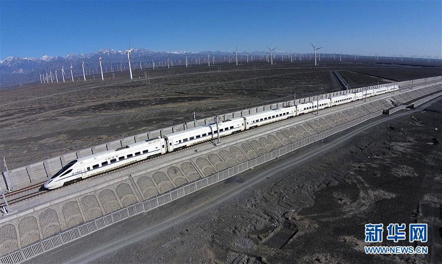 一輛和諧號動車穿行在新疆烏魯木齊達坂城風力發(fā)電場的“風車森林”里(2014年11月16日無人機拍攝)。今年以來,新疆穩(wěn)步推進新能源參與“疆電外送”、擴大與燃煤自備電廠調峰替代交易等多種電力交易方式,著力破解“綠色電力”上網(wǎng)難題,新能源發(fā)電量同比增加近13個百分點,而棄電量和棄電比實現(xiàn)“雙降”,綠色發(fā)展理念進一步落實。 新疆是我國重要的能源供應和儲備基地,風能、太陽能儲量豐富。近年來,新疆新能源裝機總量突破2700萬千瓦,規(guī)模和占比均居全國前列。新華社記者 江文耀 攝