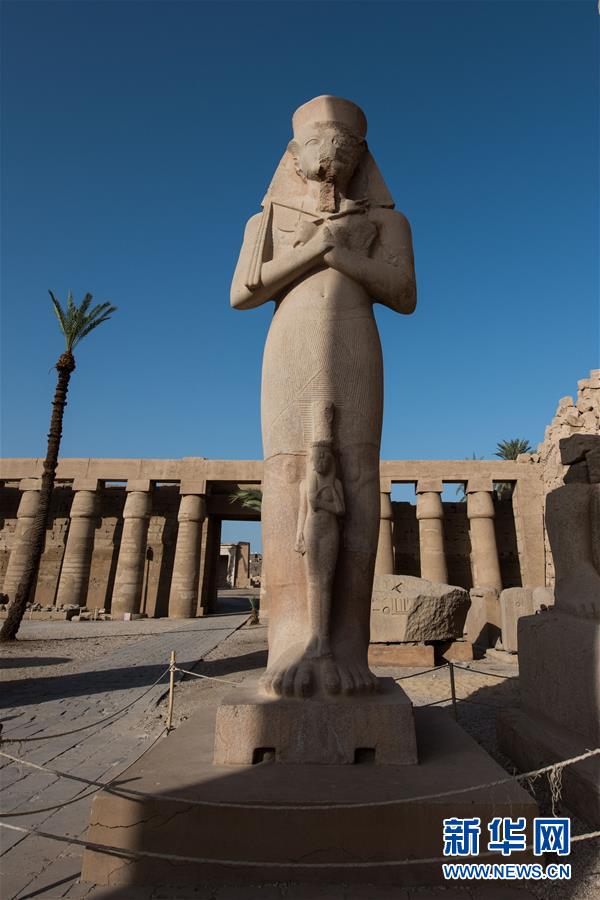 這是10月23日在埃及盧克索拍攝的卡納克神廟內(nèi)的石像。新華社記者 孟濤 攝
