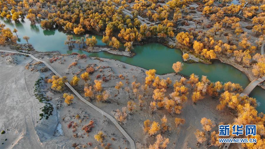 10月中旬以來(lái),新疆天山以南的塔里木河流域胡楊葉片由綠變黃,如同披上了金色外套。 2000年起,塔里木河19次向下游生態(tài)輸水,累計(jì)下泄生態(tài)水76.2億立方米。多年的持續(xù)輸水結(jié)束了塔里木河下游河道連續(xù)斷流30年的歷史,緩解了流域生態(tài)退化的被動(dòng)局面,塔里木河下游動(dòng)植物物種顯著增加、水環(huán)境得到有效改善。