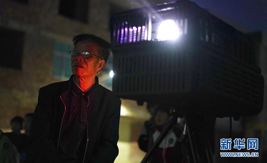 10月30日,寬田鄉(xiāng)山下村的百姓在觀看曾紀(jì)連為他們放映的電影。 新華社記者 胡晨歡攝