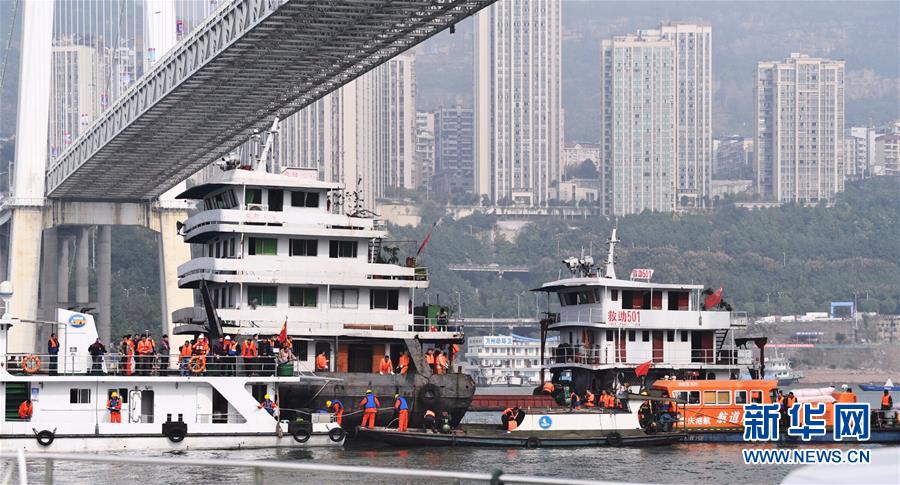 這是10月29日拍攝的重慶萬州公交車墜江事故救援現(xiàn)場(chǎng)。新華社記者 王全超 攝