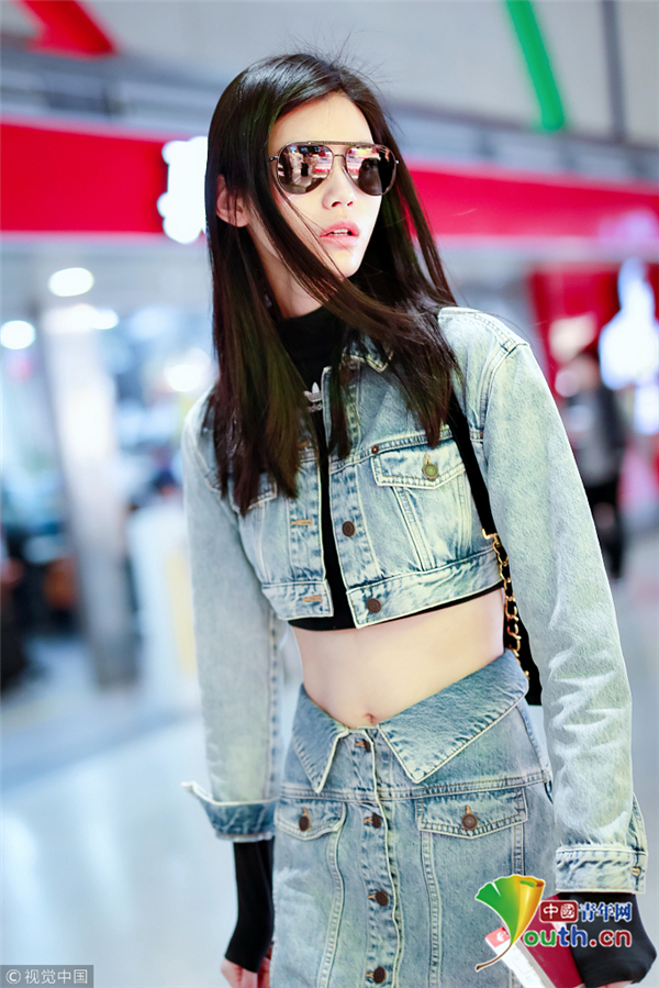 奚夢瑤一身帥氣牛仔裝 露細(xì)腰長腿顯 ...