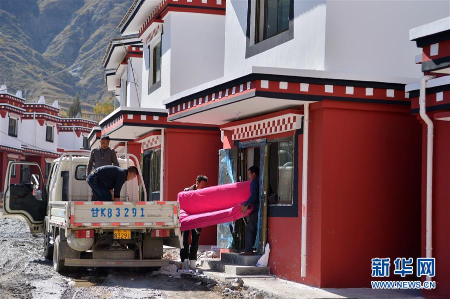 在隴南市武都區(qū)“新坪埡”,村民將山上搬下來的物品搬進(jìn)新房(10月31日攝)。新華社記者 范培珅攝
