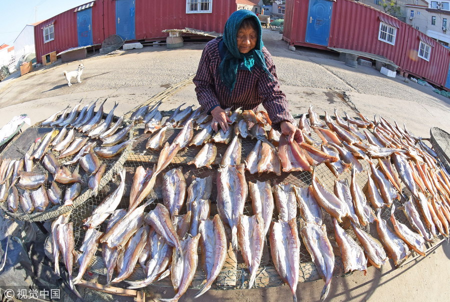 江蘇連云港:漁家曬秋 魚干飄香