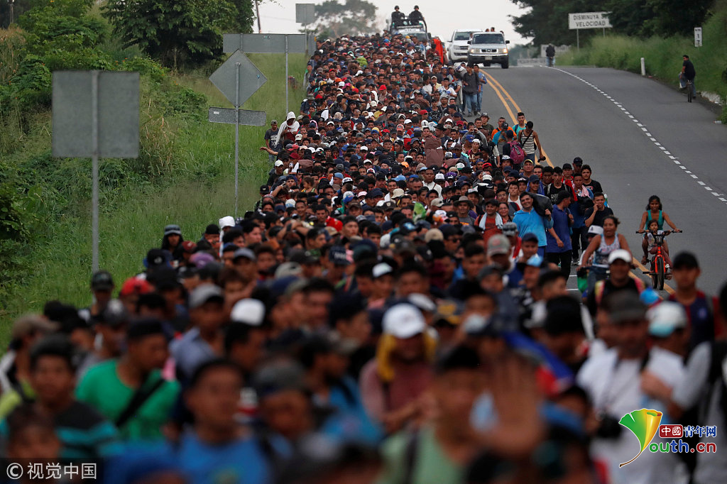 當(dāng)?shù)貢r(shí)間2018年11月2日,墨西哥連接Ciudad Hidalgo與塔帕丘拉的公路上,中美洲移民繼續(xù)向美國挺進(jìn)。圖片作者:CARLOS GARCIA RAWLINS